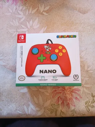 Mando Nano Wired para Nintendo Switch con diseño de Super Mario. Es compacto y viene en color rojo. - Licencia oficial Nintendo. - Conexión por cable. - Cable de 8 pies.