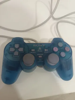 Mando original para PlayStation 1 en color azul translúcido. Mando blanco original ps1 - Diseño clásico de Sony. - Botones de acción y direccionales. - Sticks analógicos.