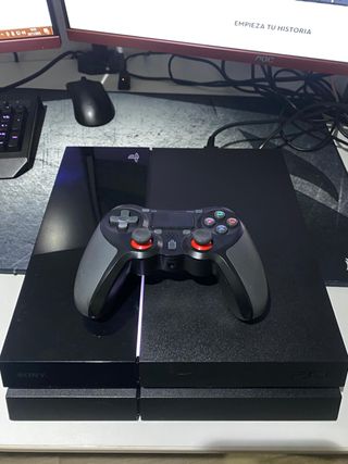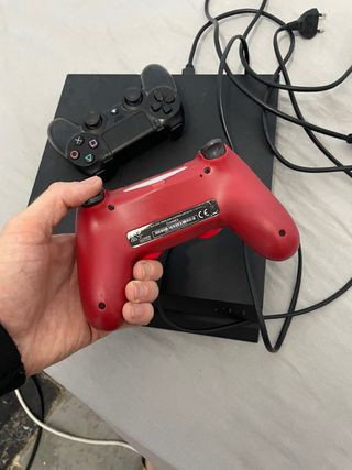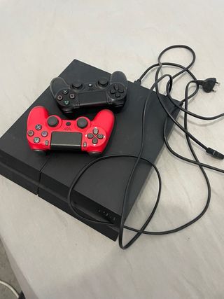 Consola PlayStation 4 en excelente estado, casi como nueva. Incluye dos mandos para disfrutar con amigos. - Consola en color negro. - Un mando en color rojo. - Un mando en color negro.