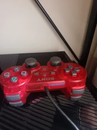 Mando original para PlayStation 2 en color rojo transparente. - Diseño DualShock 2. - Conexión por cable.