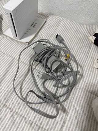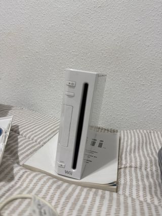 Consola Nintendo Wii en color blanco, lista para horas de diversión. - Incluye mando Wii Remote. - Incluye cables de conexión y adaptador de corriente. - Soporte vertical para la consola