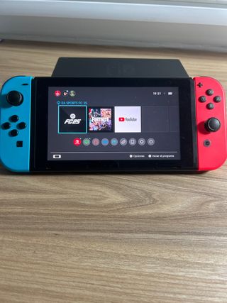 Consola Nintendo Switch con sus dos mandos Joy-Con. el mando rojo no funciona bien - Mandos Joy-Con en color azul y rojo. - Pantalla táctil perfecta sin un arañazo