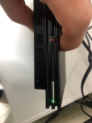 Consola de videojuegos Playstation 2 Slim en color negro. - Diseño compacto y elegante. - Puerto USB frontal. -Incluye: memory card de 8 MB y un mando original.