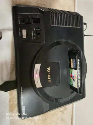 vendo o cambio.Consola de videojuegos Sega Mega Drive en color negro. Incluye mando y dos juegos de Golf y hockey no incluye transformador AC pero esta probada funcionando perfectamente puedo mandar vídeo funcionando - Mando Mega Drive Control Pad. - Interruptor de encendido/apagado. - Control de volumen. - Botón de reinicio.