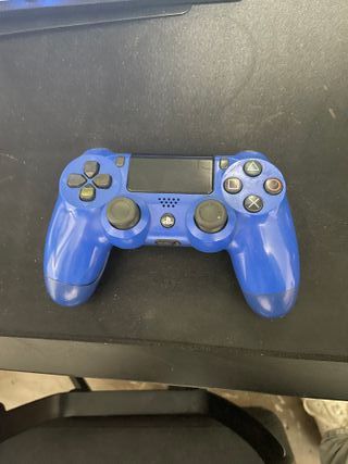 Mando de PlayStation 4 en color azul. Tiene una parte ligeramente hundida, por lo demas va perfecto.