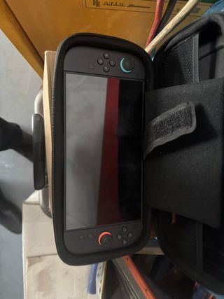 Consola Nintendo Switch en color negro con detalles en naranja. Incluye funda protectora. - Pantalla táctil. - Mandos Joy-Con desmontables. - Funda de transporte incluida. NEGOCIABLE
