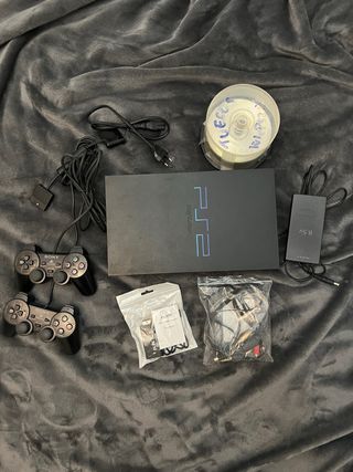 Consola PlayStation 2 en color negro, lista para horas de diversión. - Dos mandos Sony. - Adaptador de corriente. - Cables de conexión. - Disco de juegos. - adaptador HDMI - LEE JUEGOS P.I🏴☠️ hace mucho no se usa pero enciende perfectamente.