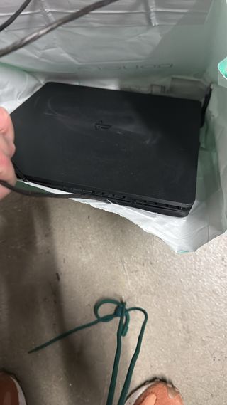 La consola esta muy bien solo tiene ese pequeño rasguño lleva sus cables. La carcasa no encaja alguna pestaña estara rota por q al mudarme se salio y no volvio a encajar he pillau una carcasa q si encaja solo q es la q lleva disco. No incluye mando. Pregutar sin problema gracias.