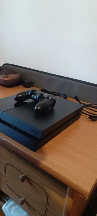Vendo PS4 500GB + mando original. Se regala un segundo mando azul al que le falla el cuadrado. Con cables. Se ha ido haciendo mantenimiento, última limpieza hace un mes. Está en perfecto estado, se ha cuidado mucho. Se vende por cambio a PS5. No envío, solo venta en persona. Trabajo desde casa, así que tengo disponibilidad cualquier día a cualquier hora.