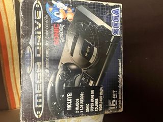 Consola Sega Mega Drive clásica, ideal para coleccionistas y amantes de los videojuegos retro. Incluye la consola, dos mandos y varios juegos. - Incluye los juegos: Sonic the Hedgehog, Super Hang On, Columns y World Cup Italia. - Dos mandos incluidos. - Gráficos de arcade y sonido estéreo digital.