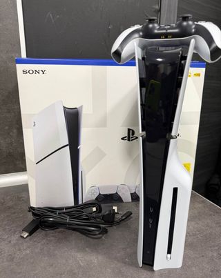 Consola PlayStation 5 SLIM con disco duro de 1TB. - Capacidad de 1TB. - Soporte para 4K y 120Hz. - Compatible con HDR. - Caja original incluida - Dos mandos -GARANTIA 1 y PROTECCION de 1 AÑO - FIFA 26 ONLINE -Uso menos de 1 mes con factura demostrable