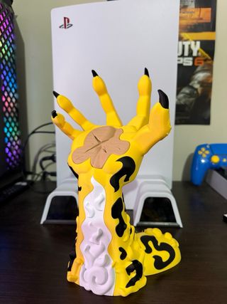Soporte para mando de consola con diseño inspirado en Rob Lucci de One Piece. - Diseño de mano con garras. - Colores vibrantes. - Base estable.
