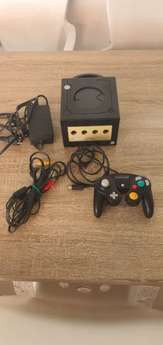 Vendo consola de videojuegos Nintendo GameCube funcionando perfectamente. Incluye mando y cables. SOLO LE FALTARIA EL EMBELLECEDOR DE GAMECUBE - Mando de control. - Cable de alimentación. - Cables de conexión AV.