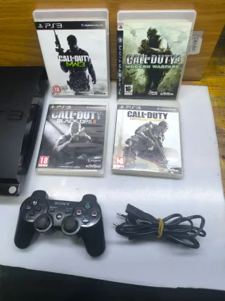 - Incluye mando DualShock 3. - Cable de corriente - Juegos: Call of Duty 3, Call of Duty 4: Modern Warfare, Call of Duty: Modern Warfare 3, Call of Duty: Black Ops.