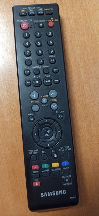 Mando a distancia para dispositivos S. - Botones de navegación y numéricos. - Control de volumen y canales. - Funciones de reproducción (Play, Stop, Pausa). - Botones de menú y retorno.