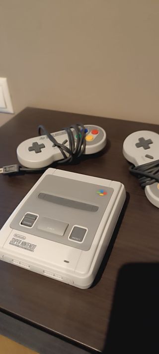 Consola Super Nintendo Mini en color blanco y gris. Incluye dos mandos. - Diseño compacto y retro. - Ideal para coleccionistas y amantes de los videojuegos clásicos. No negociable. #supernintendo #snes #MarioBros #StreetFighter #Zelda