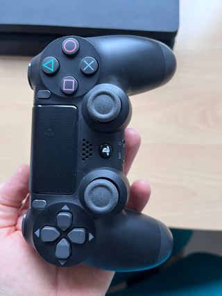 Consola PlayStation 4 Slim con disco duro de 500GB. - Modelo: PS4 Slim - Capacidad: 500GB - Color: Negro - 2 mandos originales ps - 2 mandos no originales pero funcionan muy bien. - 16 juegos - Base para cargar 2 mandos y refrigeración de la consola. Para no quedarte sin batería y sin que se caliente la consola. - No le falta de nada, que los mayores y pequeños pasar un buen rato juntos en Navidades al tener 4 mandos...para los amantes del motor opción de volante. Está en su caja original casi nuevo y sin apenas uso. Envío fotos por privado y preguntas. # pack consola + volante 215€# # pack consola+ volante+ soporte volante 255€#