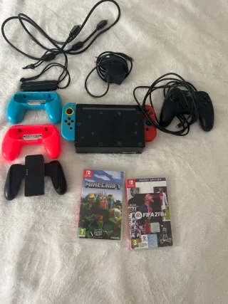 Consola Nintendo Switch con accesorios y juegos. Vendo Nintendo Switch original totalmente funcional. La consola enciende y funciona correctamente, pantalla en buen estado. 🔧 Estado de los Joy-Con: - Ambos joysticks sin la goma - Joy-Con derecho con el joystick roto - Ideales para reparar, cambiar sticks o usar con mando Pro 📦 Incluye: - Consola Nintendo Switch - Joy-Con azul y amarillo (ver estado en fotos) 📸 Se entrega tal cual se ve en las fotos. 💬 Precio ajustado al estado, escucho ofertas. 🤝 Entrega en mano o envío por Wallapop. ‼️ Minecraft no se incluye‼️