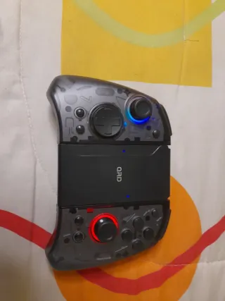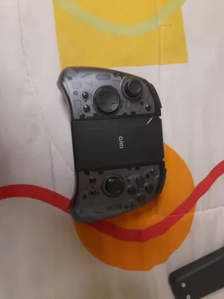 Mando de juego QRD para dispositivos móviles. Diseño ergonómico y moderno. - Compatible con smartphones. - Botones y joysticks de alta precisión. - Acabado en color gris con detalles. - Conexión estable para una experiencia de juego fluida.