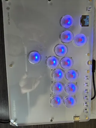 Teclado arcade Haute 42. - Diseño moderno y elegante. - Botones con iluminación LED. - Acabado en blanco. - Incluye pantalla pequeña.