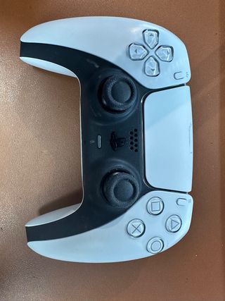 Consola de videojuegos Playstation 5 en color blanco modelo sin disco. Incluye un mando adicional. Unico defecto es una mancha en uno de los mandos.