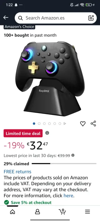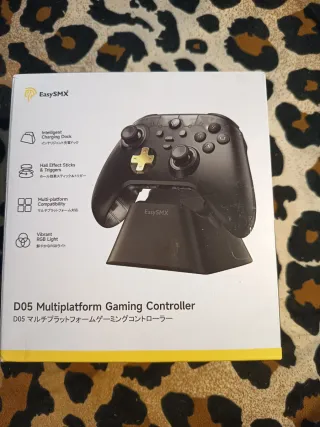 Mando de gaming EasySMX modelo D05, compatible con múltiples plataformas. Incluye una base de carga inteligente. - Base de carga inteligente. - Sticks y gatillos Hall Effect. - Compatibilidad multiplataforma. - Luz RGB vibrante.
