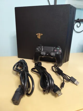 Consola PlayStation 4 Pro de 1TB en color negro. Incluye mando y en buen estado. ✔ Funciona perfectamente ✔ Muy cuidada, sin rayones ni golpes ✔ Incluye mando DualShock 4 original ✔ Incluye cable HDMI y cable de corriente ✔ Nunca abierta ❌ No tengo la caja original Siempre usada en ambiente limpio y sin humo y con precinto de seguridad de garantía, nunca ha sido abierta, un solo usuario. Entrega en mano en [TU CIUDAD]. DualShock 4 y todos los cables necesarios para su funcionamiento. - Disco duro de 1TB. - Mando inalámbrico DualShock 4. - Cable de alimentación. - Cable HDMI. - Cable micro USB para e