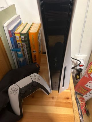 Consola Playstation 5 en color blanco y negro. - Incluye dos mandos. - Soporte vertical para la consola. casi nuevo sin uso,tengo cheque de julio de Amazon de compra está nueva tiene 5 meses de vida . con su caja original