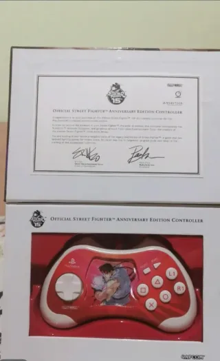 Mando oficial de edición especial para PlayStation 1. - Diseño conmemorativo del 15 aniversario de Street Fighter. - Colores rojo y blanco. - Incluye certificado de autenticidad. -Incluye cómic. -Nuevo usado.