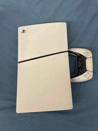 PRECIO NEGOCIABLE. Consola PlayStation 5 Slim Digital Edition en color blanco, prácticamente sin uso. Se entrega con su caja original. - Incluye mando, con pequeñas manchitas, que no he conseguido quitarlas