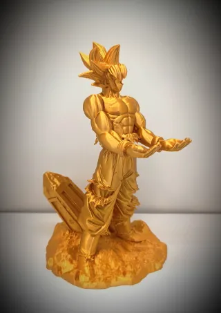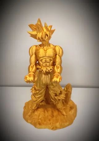 Soporte para mandos de videoconsolas inspirado en Goku Dragon Ball en modo Super Saiyan, acabado en color dorado metálico espectacular. Preguntanos por otros colores. Ideal para usar como soporte de mando, u objeto decorativo para setups gamers o estanterías. Gran nivel de detalle en musculatura, cabello y base rocosa. Pieza sólida y estable, terminada con mucho cuidado. Perfecto para fans de Dragon Ball y coleccionistas. ¡Una pieza épica para elevar tu setup al siguiente nivel! 💥🐉