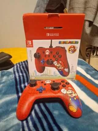 Mando con cable para Nintendo Switch con diseño de Mario Bros. Le falta el cable. - Color rojo vibrante. - Estampado temático de Mario Bros. - Conexión por cable.