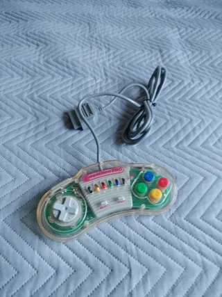 Mando transparente para Super Nintendo. - Diseño clásico con cruceta y botones de colores. - Conexión por cable.