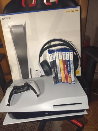✨ PS5 como recién salida de la tienda ✨ Incluye: 🎮 Consola con lector de discos y SSD 825 GB 🎮 2 mandos DualSense + base de carga 🎧 Auriculares Pulse 3D 📀 Juegos: God of War Ragnarök, Astro Bot, Spider-Man 2, Gran Turismo 7, Demon's Souls y Death Stranding DC 📦 Caja original y garantía vigente 🌐 Cuenta con PS Plus activa para jugar online Si llegamos a un acuerdo y hace falta más información para la compra, le facilitaré los tres últimos dígitos. Mi número es 676 193… 👉 Solo venta completa, no hago cambios ni separo accesorios. 👉 Precio cerrado, sin ofertas. ✈️ ✅Envío disponible✅