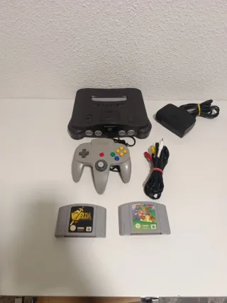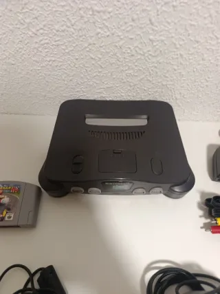 Consola Nintendo 64 completa Incluye: - consola Nintendo 64 - mando original gris sin holgura en el joystick - Cable Av N64 - fuente de alimentación N64 - Jumper pak original precintado - Cartucho Super Mario N64 original - Cartucho Zelda ocarina N64 original Probado y funcionando correctamente ⭐⭐⭐⭐⭐ Vendedor con valoraciones positivas 🚀 Envío rápido y comunicación constante ✅ Artículos originales Nintendo 64 ➕ Más artículos Nintendo en mi perfil