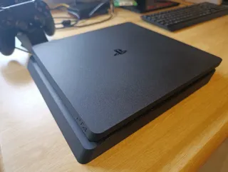 Consola PlayStation 4 Slim con 1 TB de almacenamiento. Incluye todo el cableado, dos mandos y una base de carga. - Capacidad de 1 TB. - Dos mandos incluidos. - Base de carga para mandos. - Todos los cables incluidos.