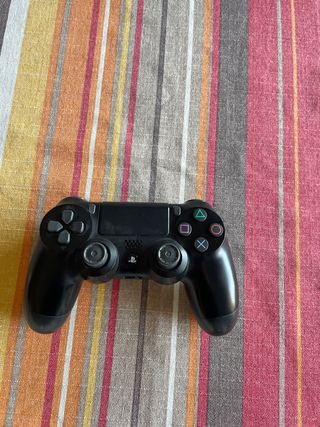 Mando de PlayStation 4 en color negro. - Botones y joysticks funcionales. - Funciona a la perfección. - Joystick izquierdo no tiene goma, los recambios son muy baratos.