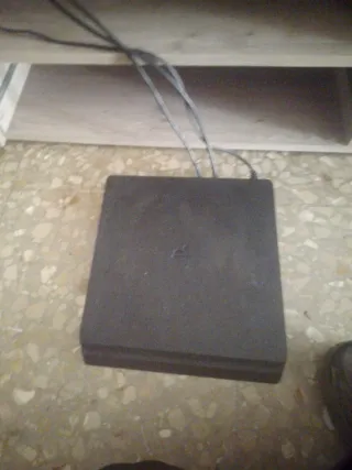 consola PlayStation 4 Slim de 2018. Con caja Con 5 mandos (2 funcionan bien y 3 para piezas) también trae soporte para cargar los mandos y ventiladores. Le tienes que ayudar para que entre el disco pero los lee perfectamente y funciona. Trae el cable HDMI y alimentación