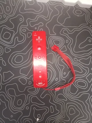 Mando de Wii en color rojo, con correa de seguridad. - Botón de encendido. - Cruceta direccional. - Botones A, B, Home, -, +, 1 y 2. - Indicador de conexión. La Tapa no es Original El Funcionamiento es el Correcto