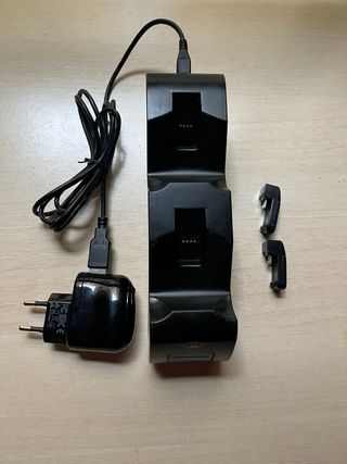 Base de carga doble para mandos de PlayStation 4 (PS4). Permite cargar dos mandos simultáneamente. - Diseño vertical y compacto. - Incluye adaptadores para los mandos. - Conexión USB.