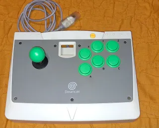 Mando arcade para Dreamcast con diseño clásico. - Palanca de mando y botones de acción. - Cable de conexión incluido. - Diseño en gris y blanco.