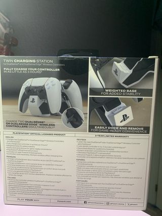 Cargador dual para mandos ps5, con cable para conectar a la corriente. Nuevo, se ha desembalado para probarlo solamente.