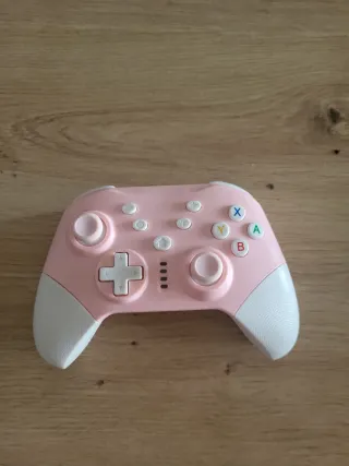 No se ponerlo a funcionar Mando de videojuegos en color rosa, con un diseño inspirado en el estilo de Xbox. - Diseño ergonómico. - Botones frontales con letras (A, B, X, Y). - Cruzeta direccional. - Sticks analógicos. - Indicadores LED.