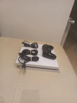 Consola PlayStation 4 modelo Fat en color blanco. - Incluye mando DualShock 4. - Incluye cable Hdmi, cable para cargar el mando y para encender la consola. Esta un poco rayada pero funciona muy bien sin problema.
