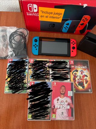 Consola Nintendo Switch con accesorios y varios juegos. - Juegos: FIFA 20, Los Increíbles. - Incluye dock, mandos y cables PRECIO CONSOLA sin JUEGOS 170€ PRECIO CONSOLA CON 2 JUEGOS 180€