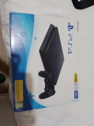 Consola PlayStation 4 Slim de 500 GB, en perfectisimo estado, poco uso, sin arañazos, Con su caja, todo su cableado, cascos originales de playstation y manuales de instrucciones. - Modelo Slim. - Capacidad de 500 GB. - Incluye dos mandos originales DualShock 4. - Incluye 4 juegos, Ea Fc 24, Gran turismo Sport, The Crew 2 y Starlink