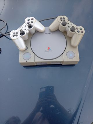 Consola clásica PlayStation 1 en color beige, ideal para coleccionistas o para revivir la nostalgia. - Incluye dos mandos originales. - Cableado necesario para su conexión. -Pequeño fallo al cerrar tapa pero cierra bien. Faltan los cables de alimentación.