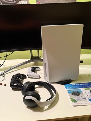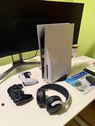 Se vende consola PlayStation 5 con 3TB(m2 instalada) de memoria, dos mandos y auriculares. Ha tenido muy poco uso, por eso la vendo ya que entre usos pasan varios meses. A la ps5 se le instalo una m2 de 2TB entonces tiene una capacidad de memoria para guardar juegos de 3TB en total.