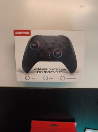 Vendo mando inalámbrico Pro TUTUO para Nintendo Switch. Está nuevo, tan solo utilizado 1 vez. - Es inalámbrico. - Diseño elegante y cómodo. - Incluye cable USB para cargarlo.