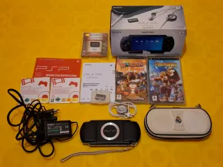 Consola portátil Sony PSP-1004K en color negro y con el lector UMD funcionando, ideal para disfrutar de juegos y contenido multimedia. Incluye varios accesorios para complementar tu experiencia. - Consola PSP-1004K. - Cargador de corriente Original. - Funda de transporte. - Bateria original - Dos juegos: Worms Open Warfare y Taito Legends. - Tarjeta de memoria Memory Stick PRO Duo. - Disco Demo Disc. - Manuales de instrucciones.